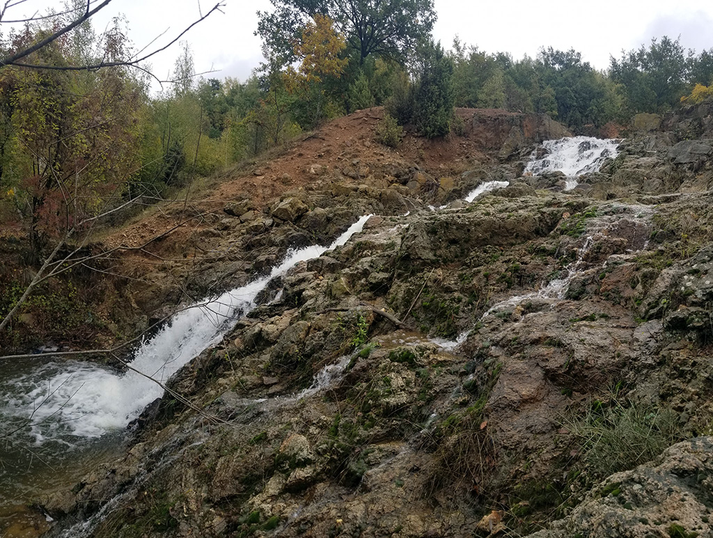Каскаден водопад с обща височина 15 м. и непостоянен отток. Снимки Нина Серафимова и Симеон Иванов Забележка: водопадът е изкуствео формиран след засипване на язовира.