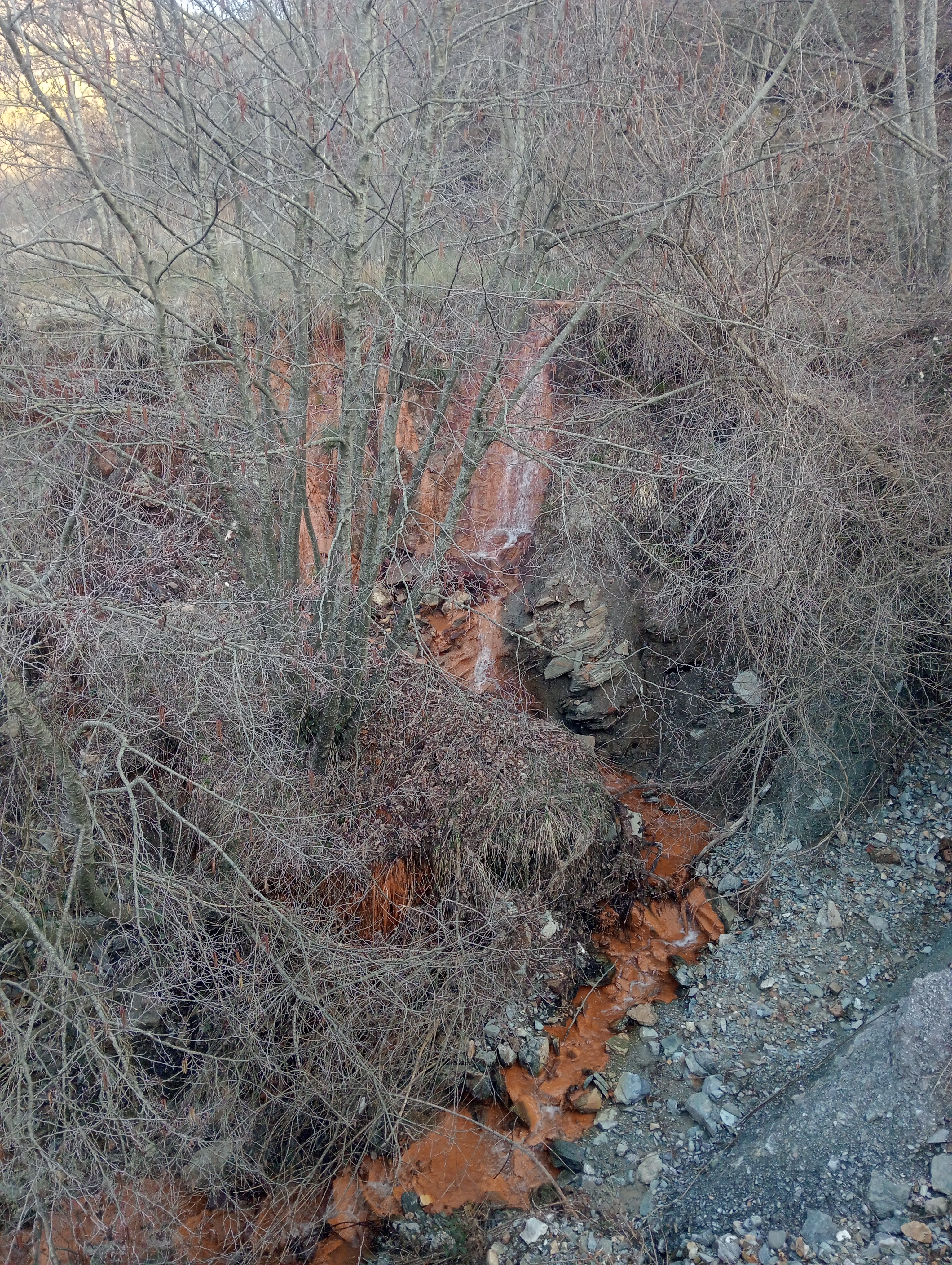 Изкуствен водопад на приток. Водата идва от изоставен рудник.