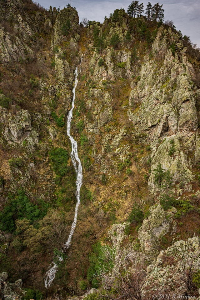 Каскада с обща височина 70-80 метра и непостоянен отток. Снимки Росен Минков Забележка: водопадът е в резултат на човешка дейност.
